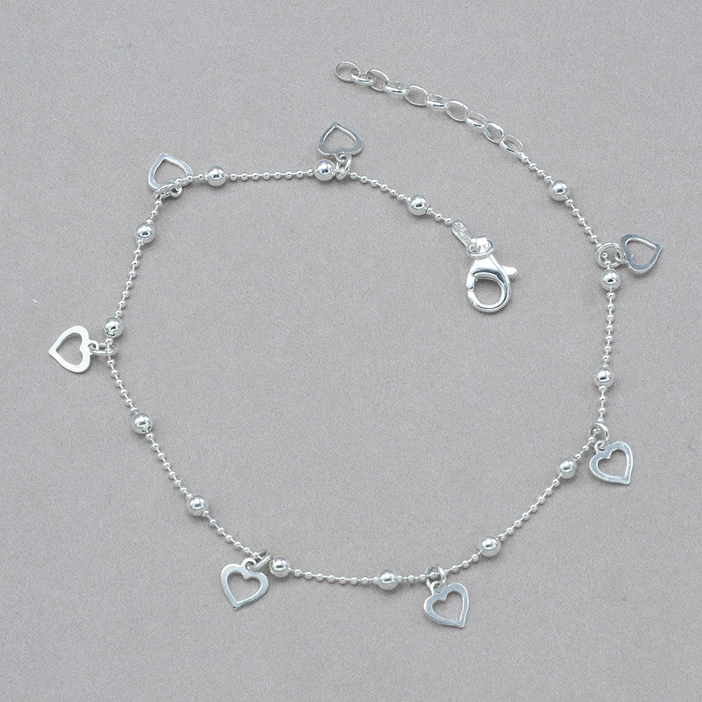 Adjustable sterling silver anklet with heart charms. Measures 9-10″ long. az ak2657