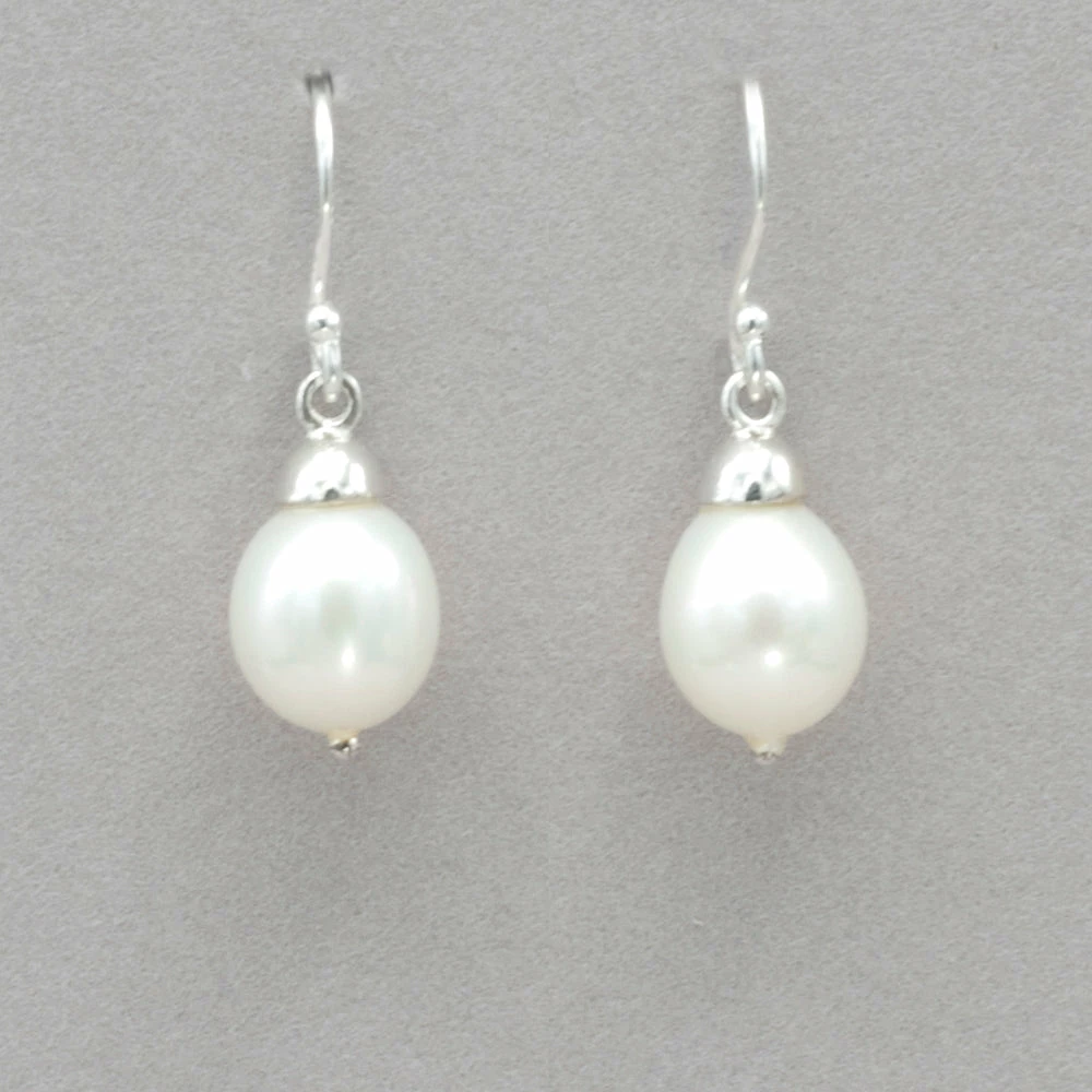 Freshwater pearl on a sterling silver ear wire. Measures 1″ long.