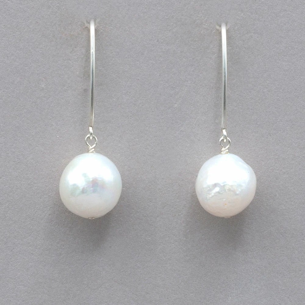 Highest luster freshwater baroque pearls, hand-selected and matched by the artisan, wrapped onto dramatic marquise-style 14 karat gold fill or sterling silver ear wires. Measures 1 5/8″ long. de er0191gf/a er0200ss/a