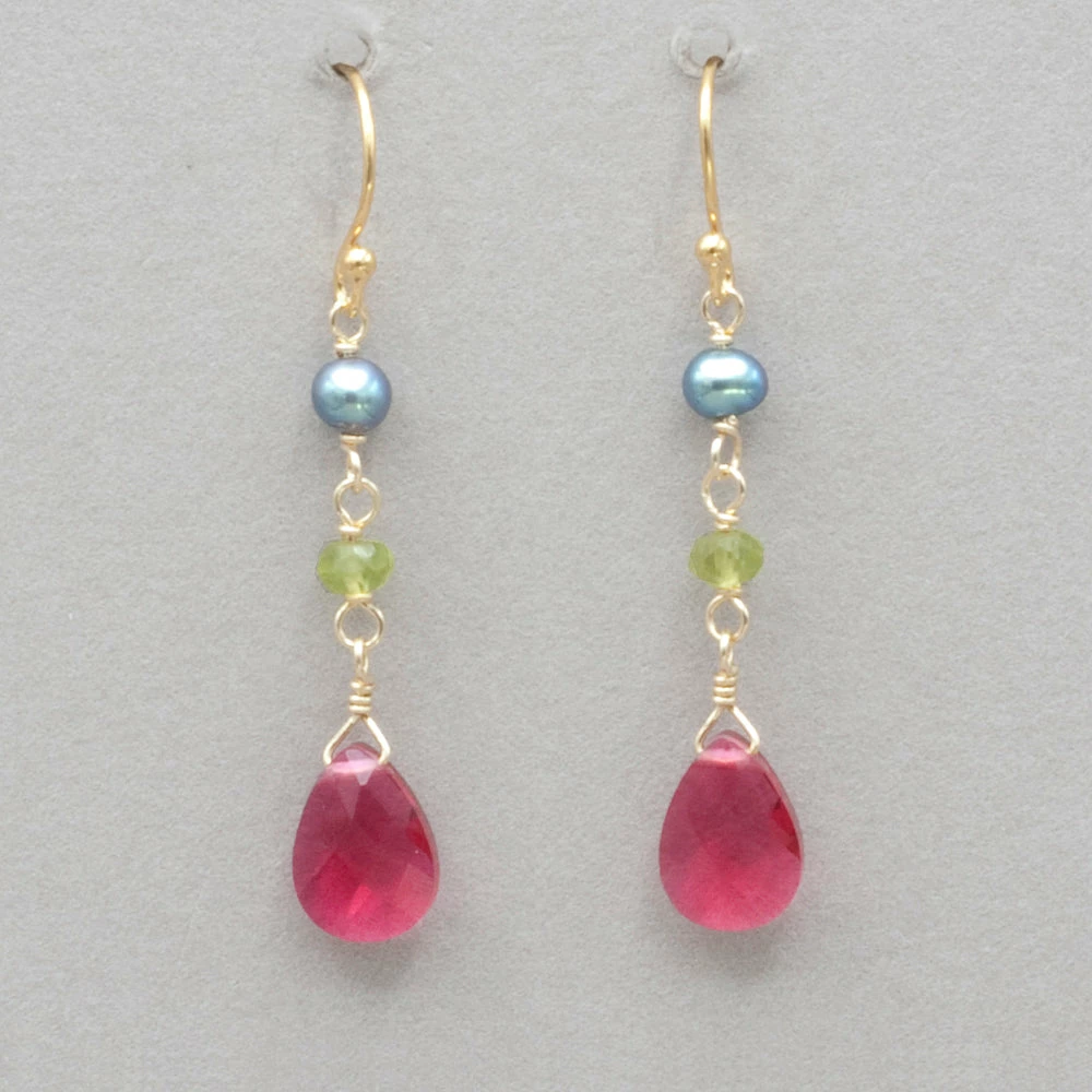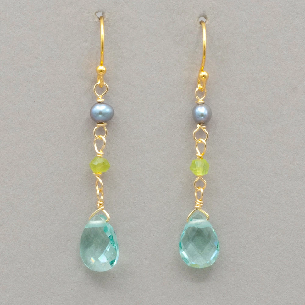 Classic elements meet modern styling in our Astoria Drop Earrings. A single freshwater pearl tops eye-catching faceted glass beads that reflect the light as you move. Faceted glass, freshwater pearl and peridot on gold overlay ear wires. Measures 1 3/4″ long by 3/8″ wide.