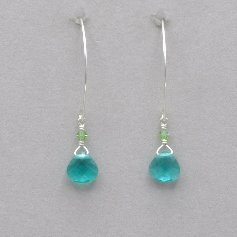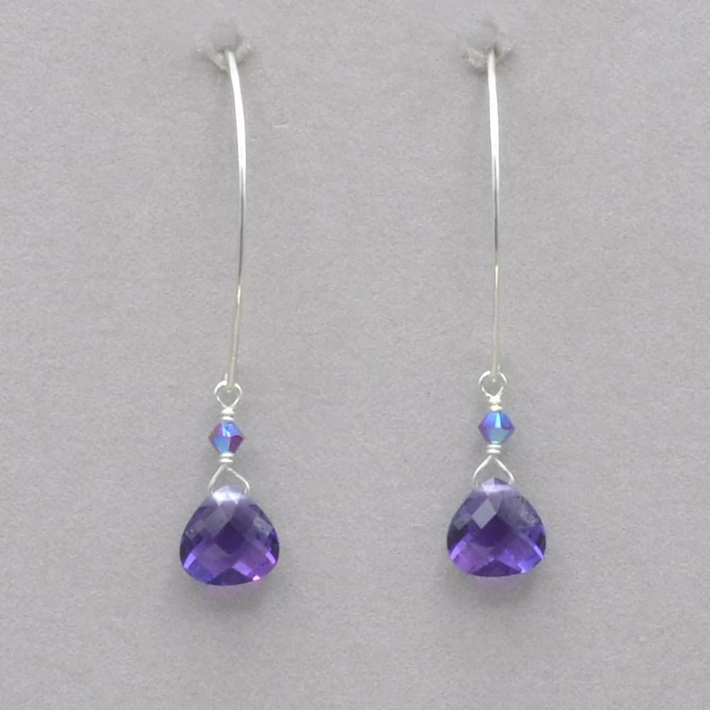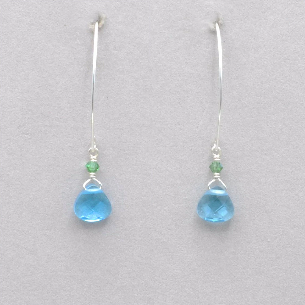 Shimmering crystal droplets dangle playfully from our Elsie Open Hoop Earrings. Elevate your look with this modern minimalist design that adds just a splash of standout sparkle. Crystal glass or quartz with Swarovski crystal, on sterling silver or gold filled hoops. Measures 1 5/8″ long by 1/4″ wide.Â