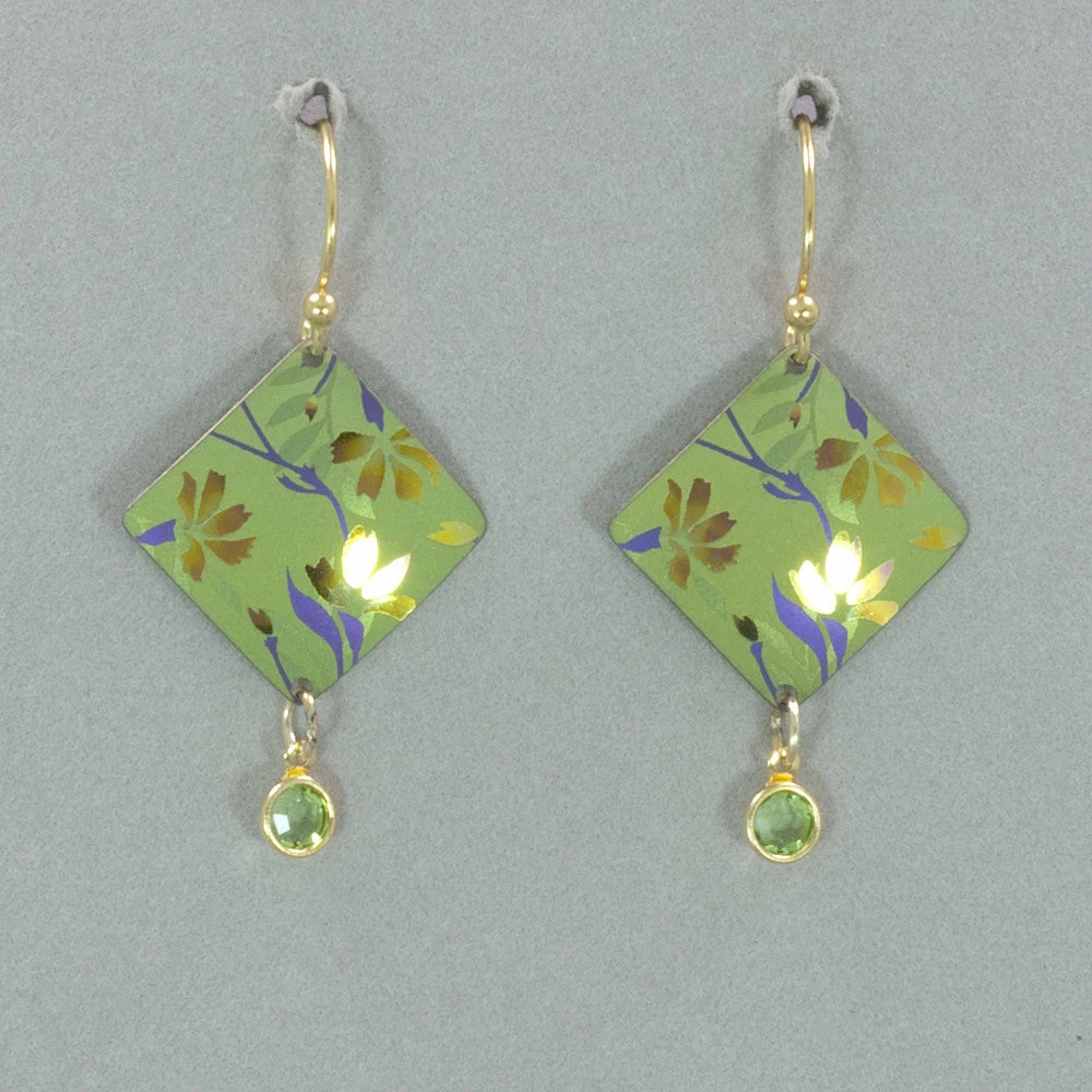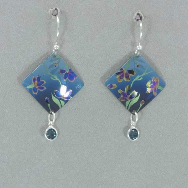 Niobium and Swarovski crystal on gold overlay or sterling silver ear wires. Measures 1 5/8″ L x 3/4″ W.