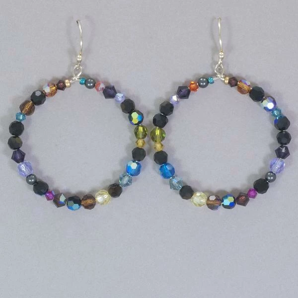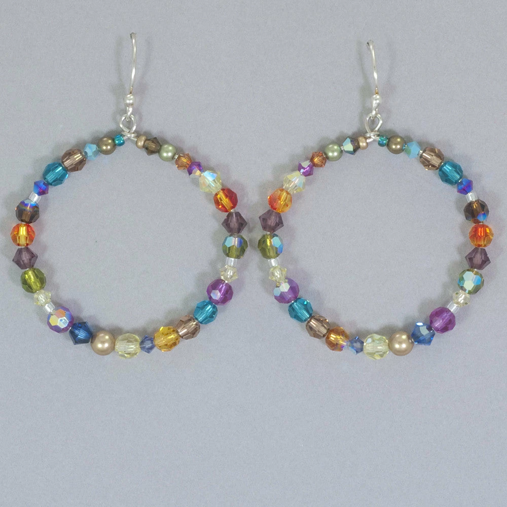 Super sparkly, fun to wear, and ultra-fashionable. These affordable earrings are guaranteed to bring a smile to your face each time you put them on. European crystals, Swarovski crystal pearls, and Bohemian glass. Sterling silver ear wires. Measures 2″ L x 1 1/2″ W.