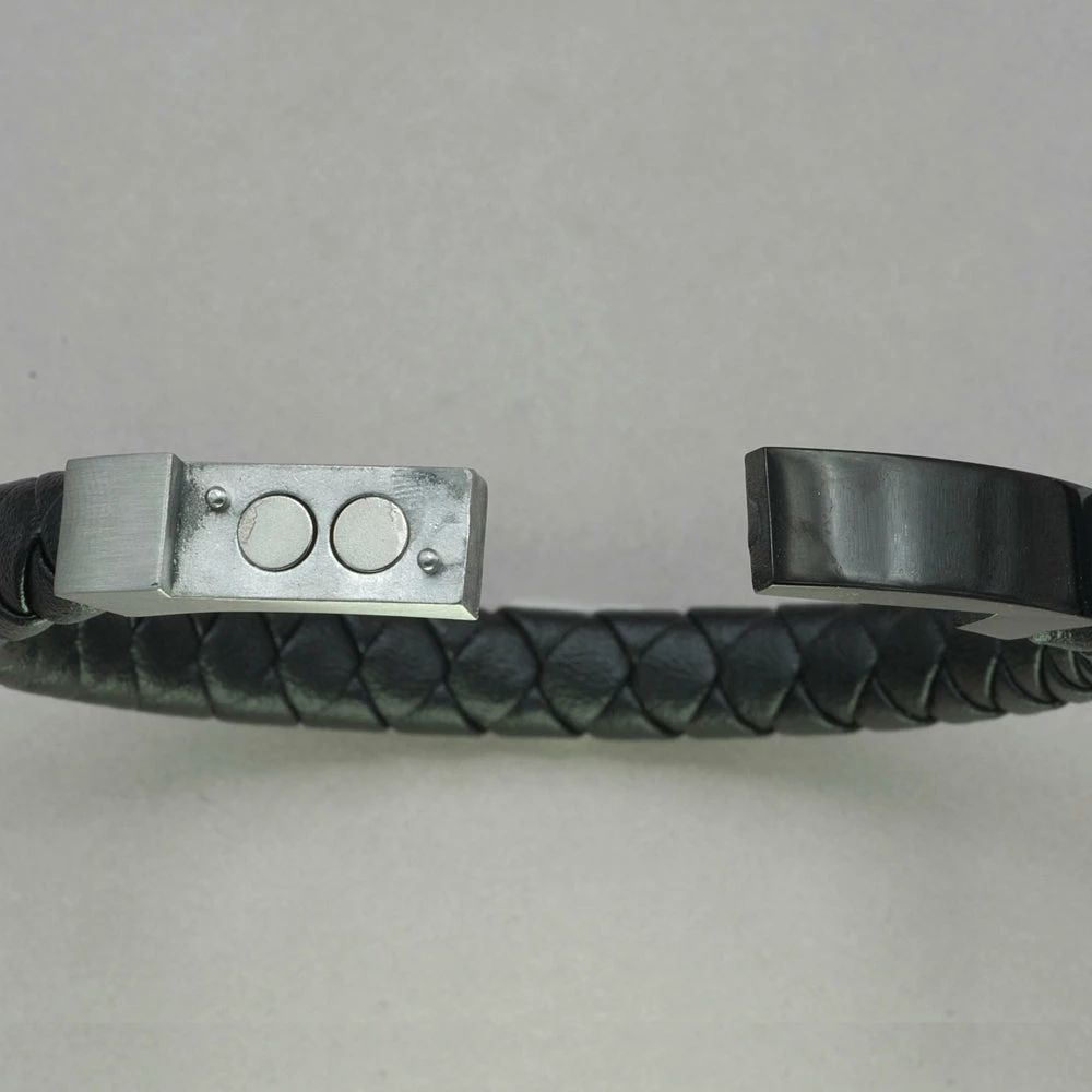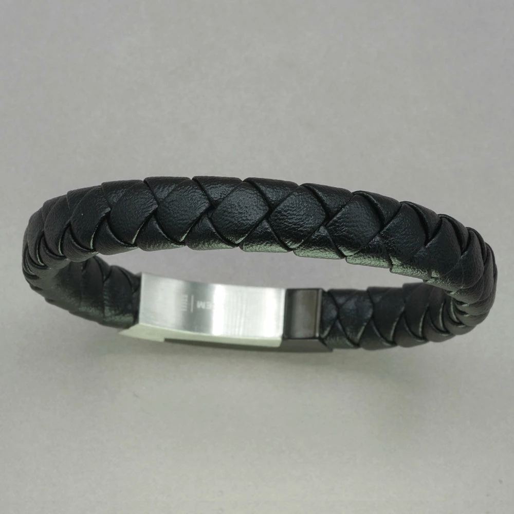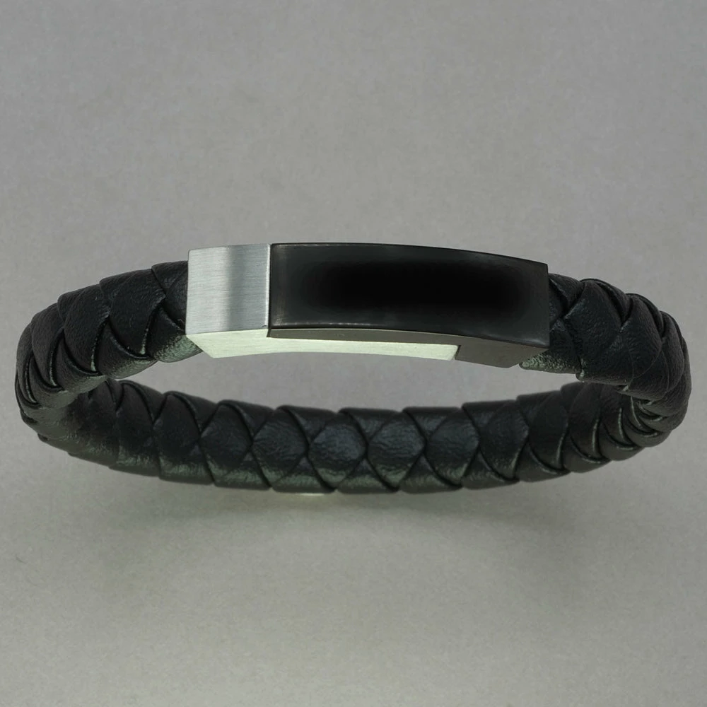 Black leather bracelet with black IP stainless steel matte clasp. ital slb 390