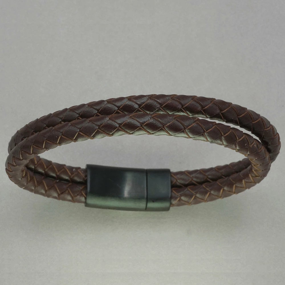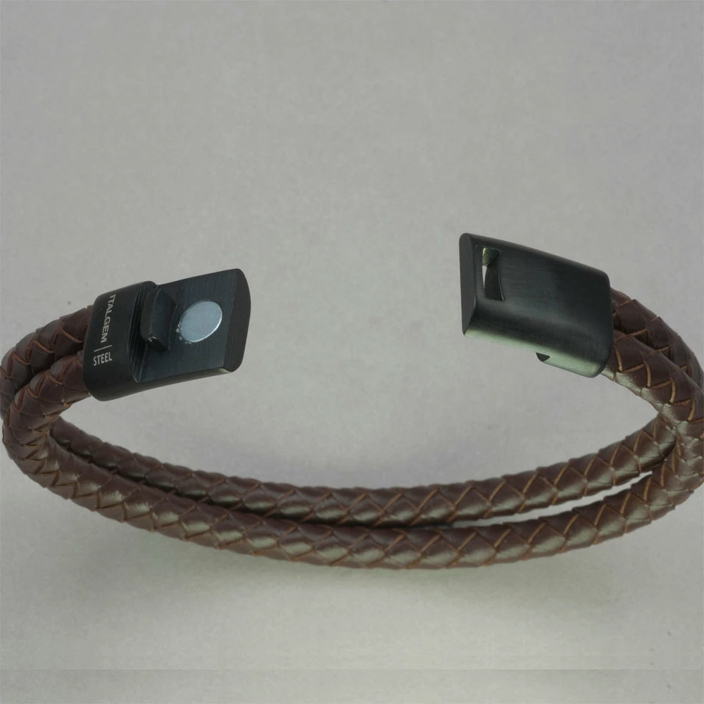 Brown leather bracelet with matte black IP stainless steel clasp. ital slb 170