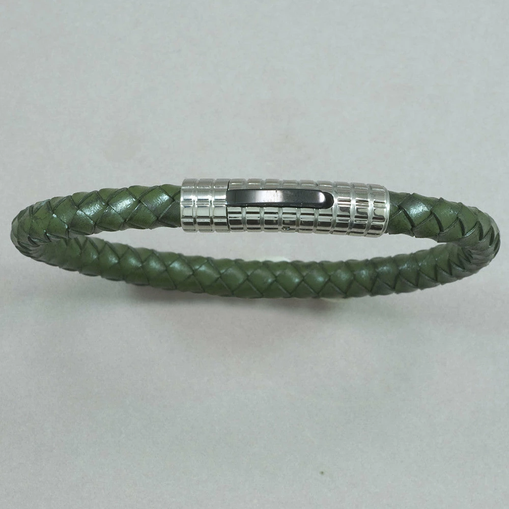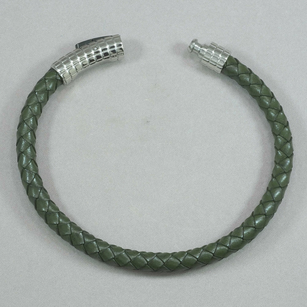 Italgem Steel Italgem Green Leather With Stainless Steel Bracelet Bracelets