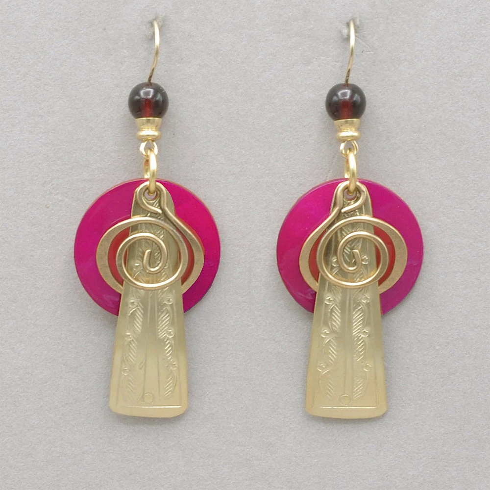 Gold or silver toned metal with an anti-tarnish coating, with mother of pearl and glass bead accents. Hypo-allergenic ear wires. Measures 2 3/8″ L x 7/8″ W. jmr 2111