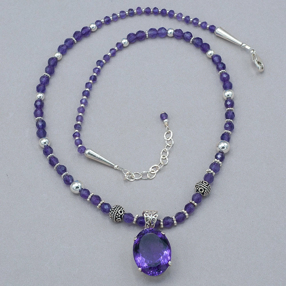 SKU: sammasati-6570766237767 Categories: Jewelry, Necklaces Tags: Admin_Consign, Material_Amethyst, Metal Color_Silver, Type_Necklaces, Vendor_Sammasati