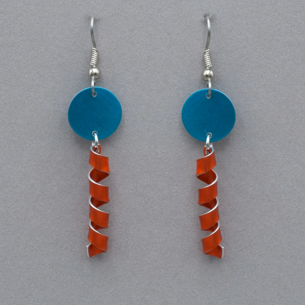 Anodized aluminum on surgical steel ear wires. Measures 2 3/8″ long by 1/2″ wide. sh ps2cs