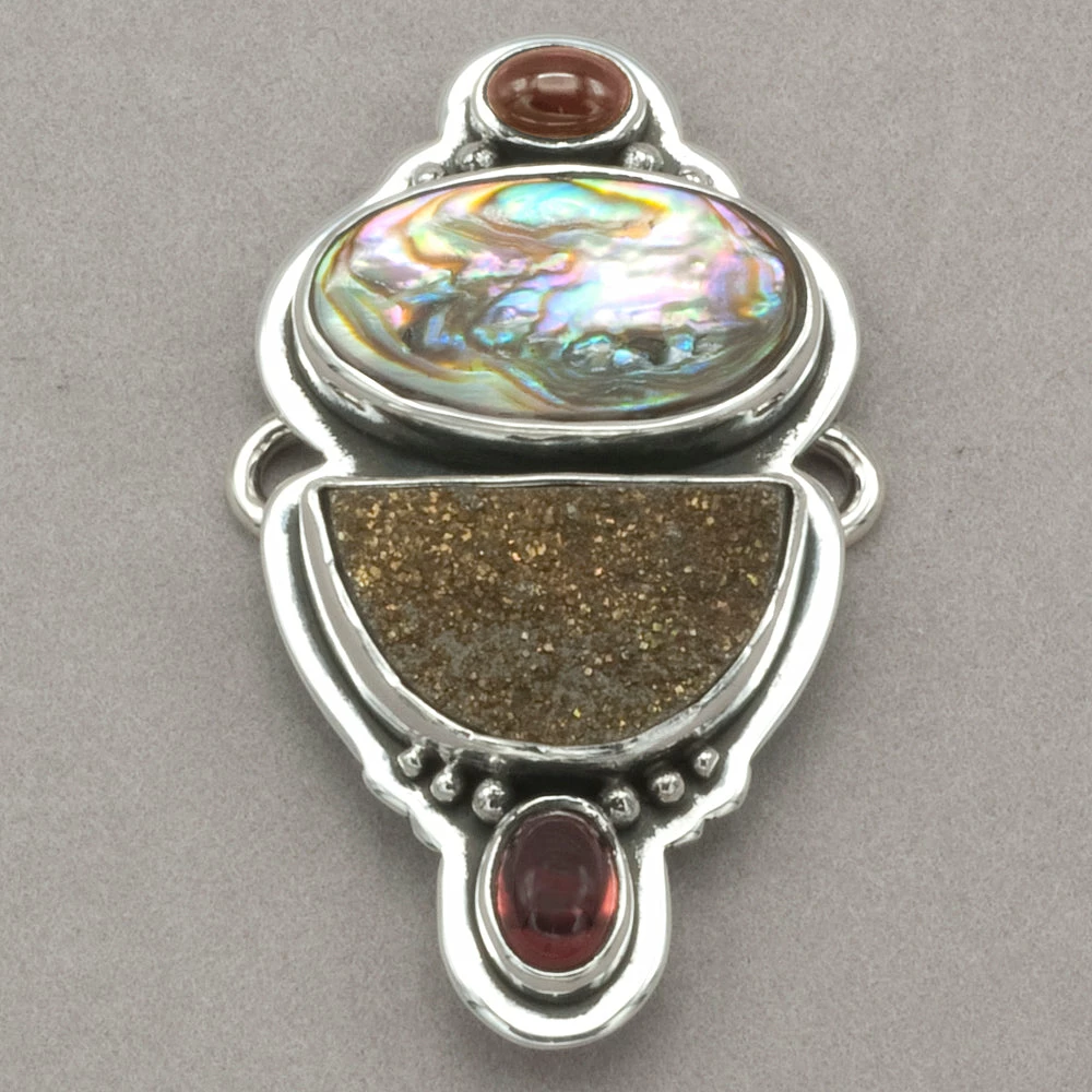 Tabra Pink Tourmaline, Abalone And Druzy Charm